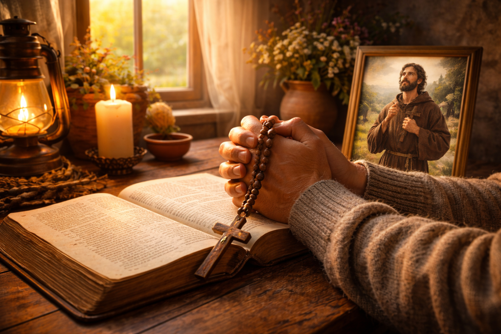Além disso, a espiritualidade de São Conrado destaca penitência, conversão e entrega total. Consequentemente, a ORAÇÃO DE SÃO CONRADO DE PLACÊNCIA torna-se instrumento de crescimento espiritual e amadurecimento na fé.